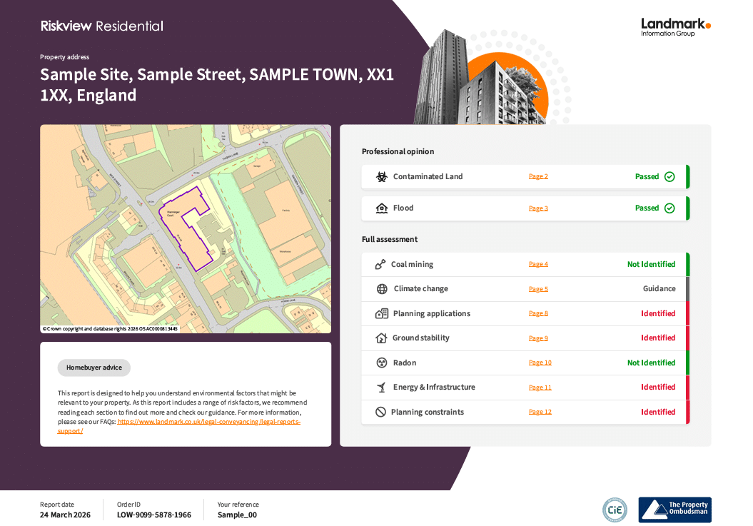 We offer a comprehensive, flexible and continually evolving range of property reports to support every type of property transaction. We work closely with our clients to interpret risk and provide clear, concise guidance and solutions where risk is identified to ensure that not only are conveyancers meeting their regulatory requirements but also that transactions progress smoothly. If you need assistance with selecting the right report for your transaction, please visit our help centre and ‘Which Report’ section.