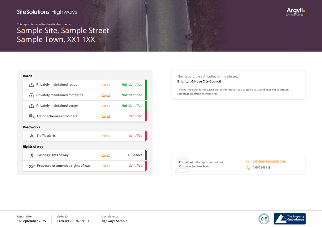 A report that provides an insight into planned changes to roads and rights of way affecting commercial sites and residential properties.