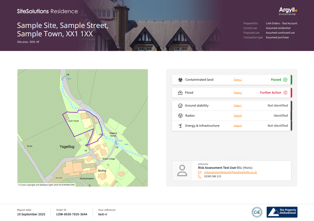 The Argyll SiteSolutions Combined report is the only fully consultant led contaminated land and flood risk environmental report for commercial transactions. Every risk opinion is provided by an Environmental Consultant following a review of data and historical mapping. This approach ensures a reliable and accurate assessment of contaminated land and flood risk.