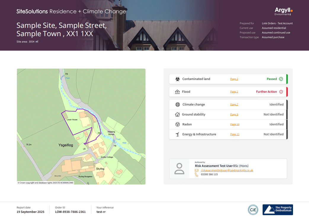 The only fully consultant led contaminated land and flood risk commercial environmental report. Every risk opinion is provided by an experienced IEMA accredited environmental consultant following a review of all data and mapping in the report. The report also covers ground stability, radon, mining and environmental compliance.